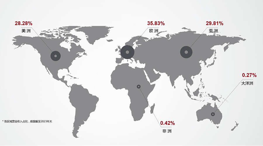 (2023年米兰科技全球市场营业收入占比图)
